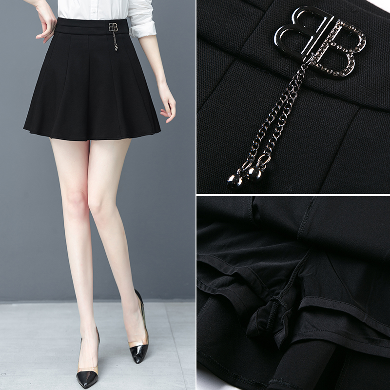 Black a short dress casual half body dress 2022 new this year popular high waist display slim pleated pleasantism