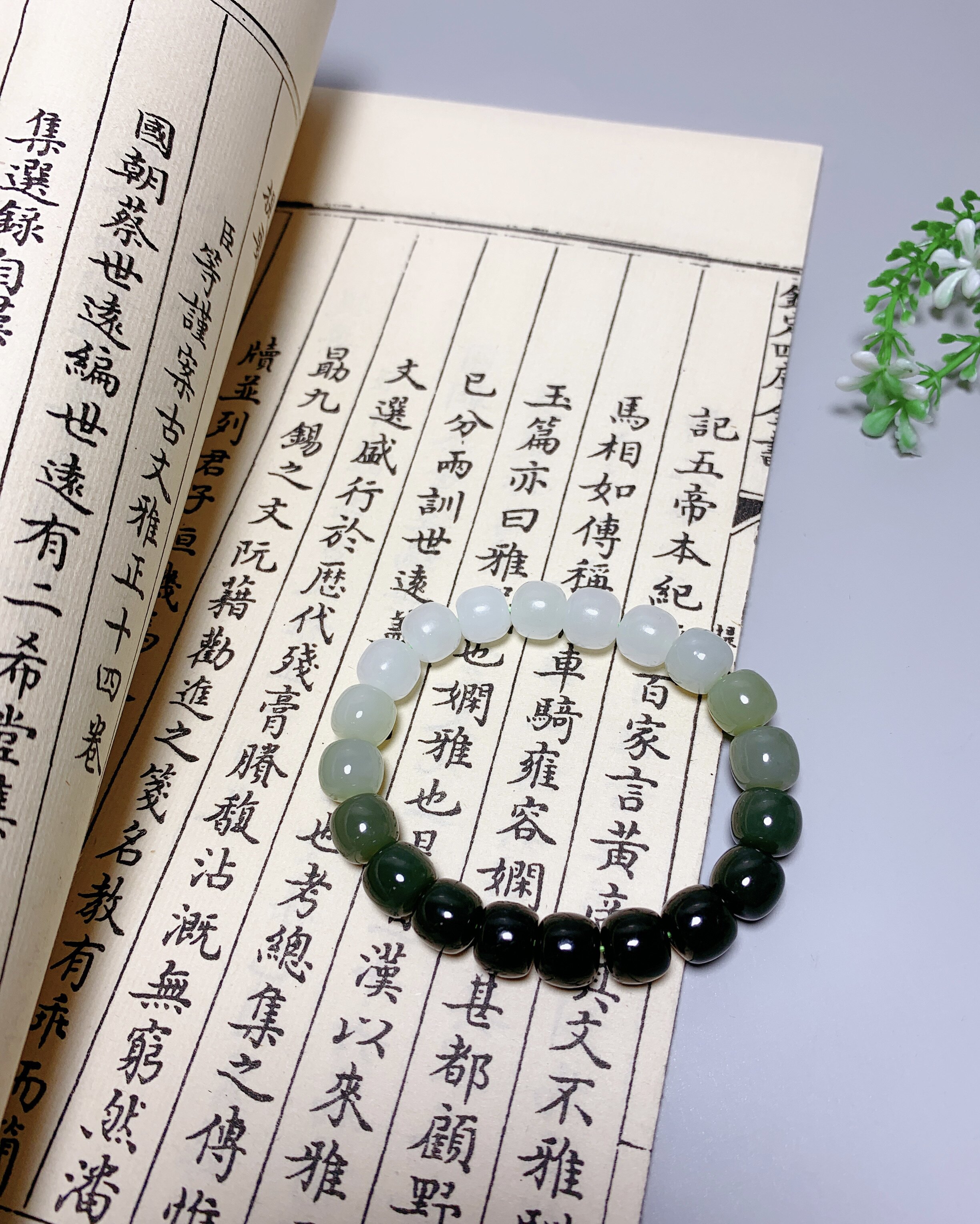 Natural Hetian jade sapphire gradient color old-fashioned bead bracelets Couples single circle old-fashioned bead bracelets Simple style
