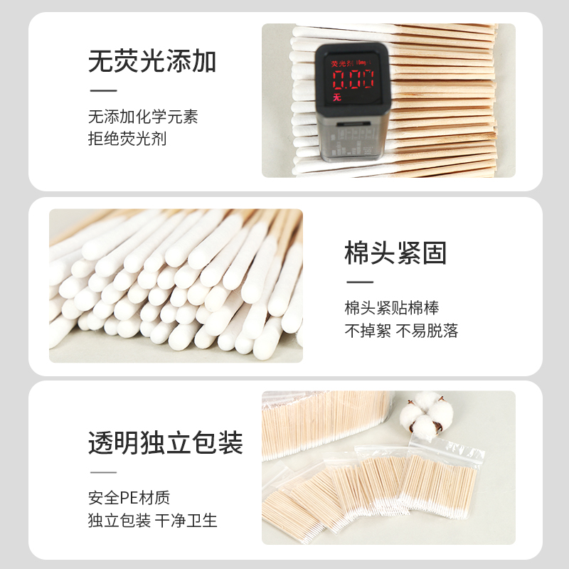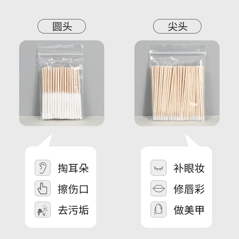 Small head cotton rods (10 packs 800) tip long tablets (10 packs 800) medium thick wool cotton bars 30 packs*10 packs (short) thickened wooden cotton bars 30