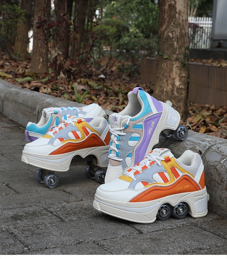 Good Angle Deformation Shoes 2021 New Explosive Walking Shoes Women Men Double Row Four Wheels Sliding Shoes Children Kick Shoes Children Kick Shoes