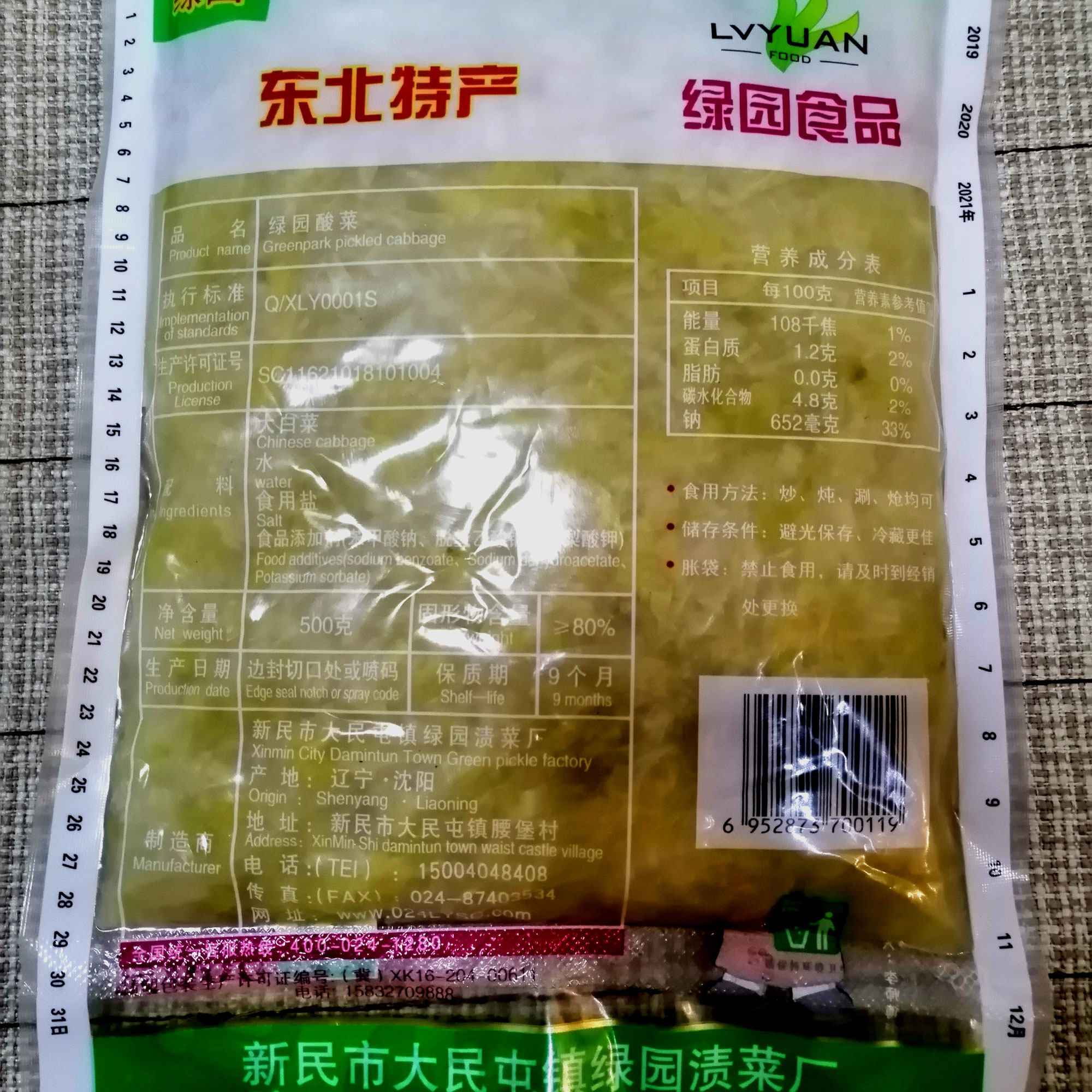 5 bags 500g green garden sour cabbage king sour vegetables Northeastern flavor sour vegetable silk big vat curing