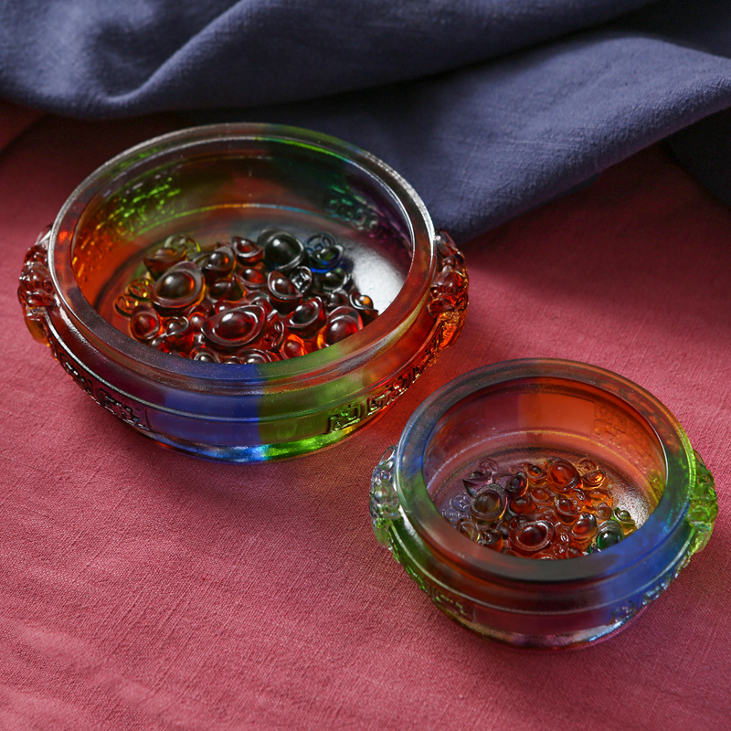 Household Buddha hall for Buddha God of wealth Sandalwood incense burner Home fortune Feng Shui lucky treasure Glass cornucopia ornaments