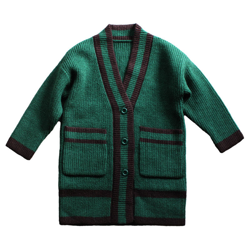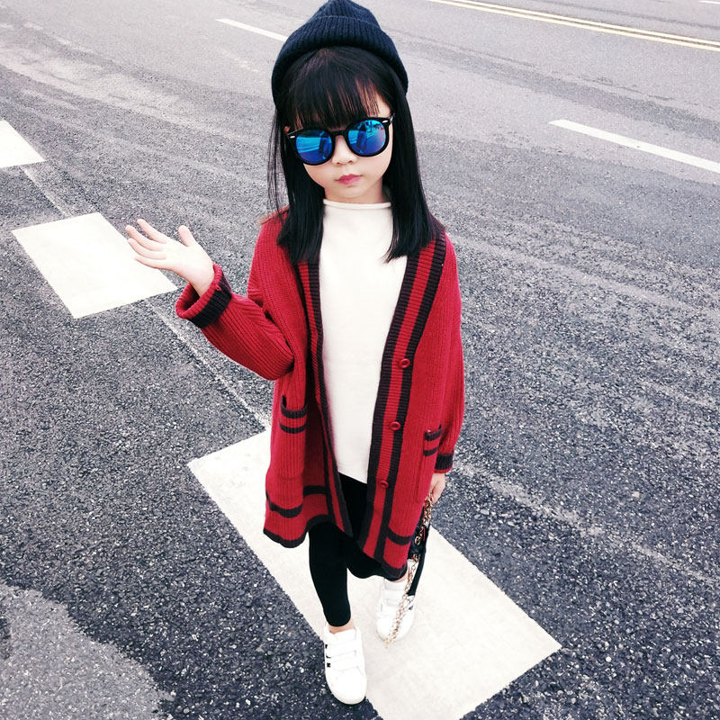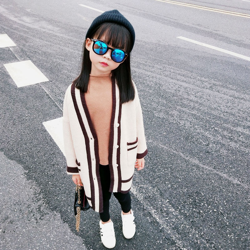 2022 autumn girls' spring style Western style Korean style knitted cardigan children's suit medium and long version college wind sweater coat