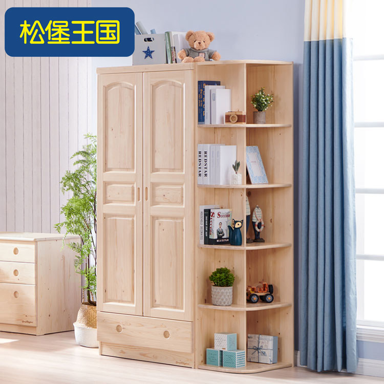Songbu Kingdom Children's wardrobe Modern minimalist original wood color solid wood 80 cm Two doors cabinet bedroom containing