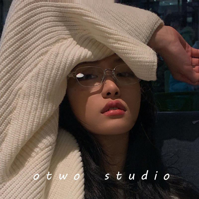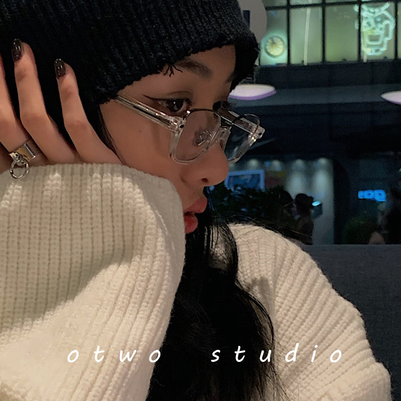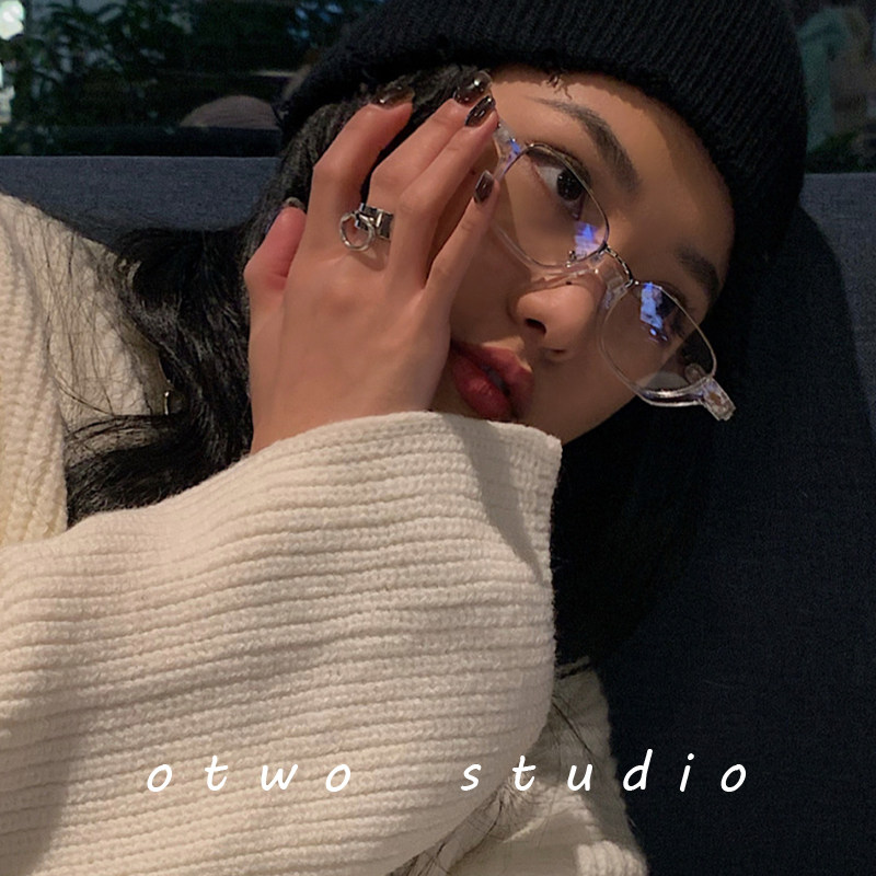 Retro small face transparent frame glasses myopia half-frame vegan mirror frame female Korean version Chaunet red ins wind male with degrees