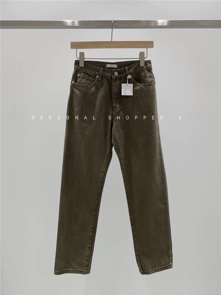 Spot Korea Pla * t * Ba * se with the same vintage foreign school brown jeans high waist thin high