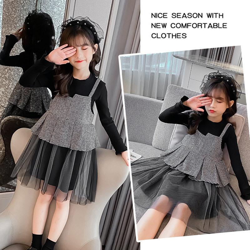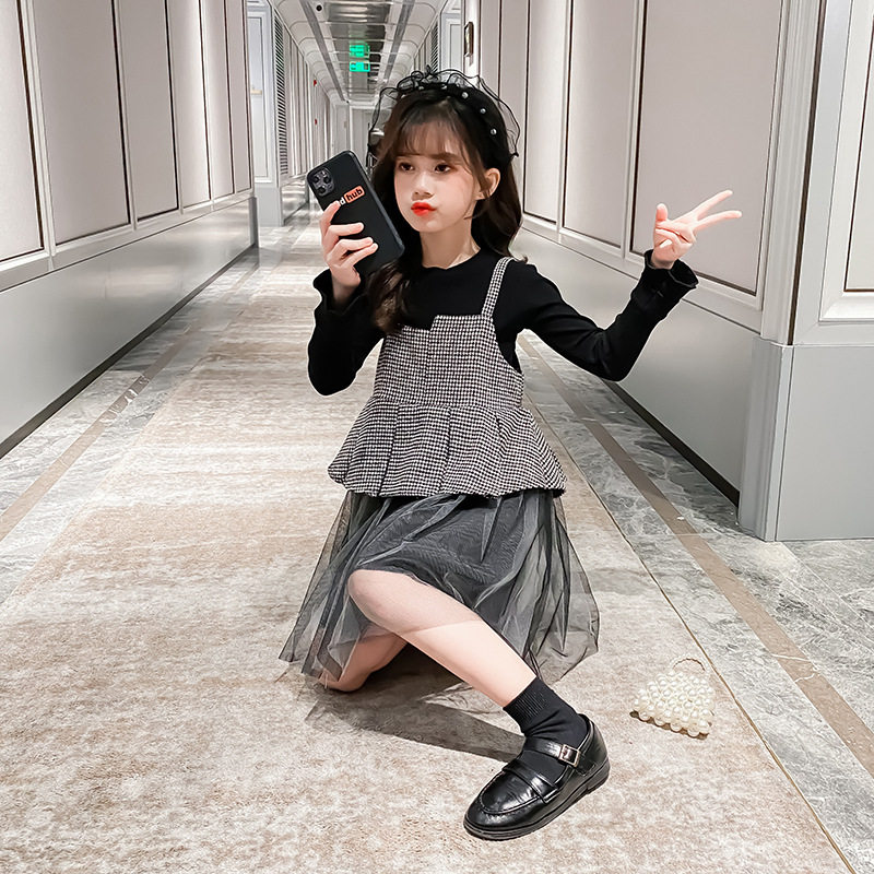 Girls' suspender dress suit 2022 spring and autumn children's foreign style princess skirt girl two-piece set
