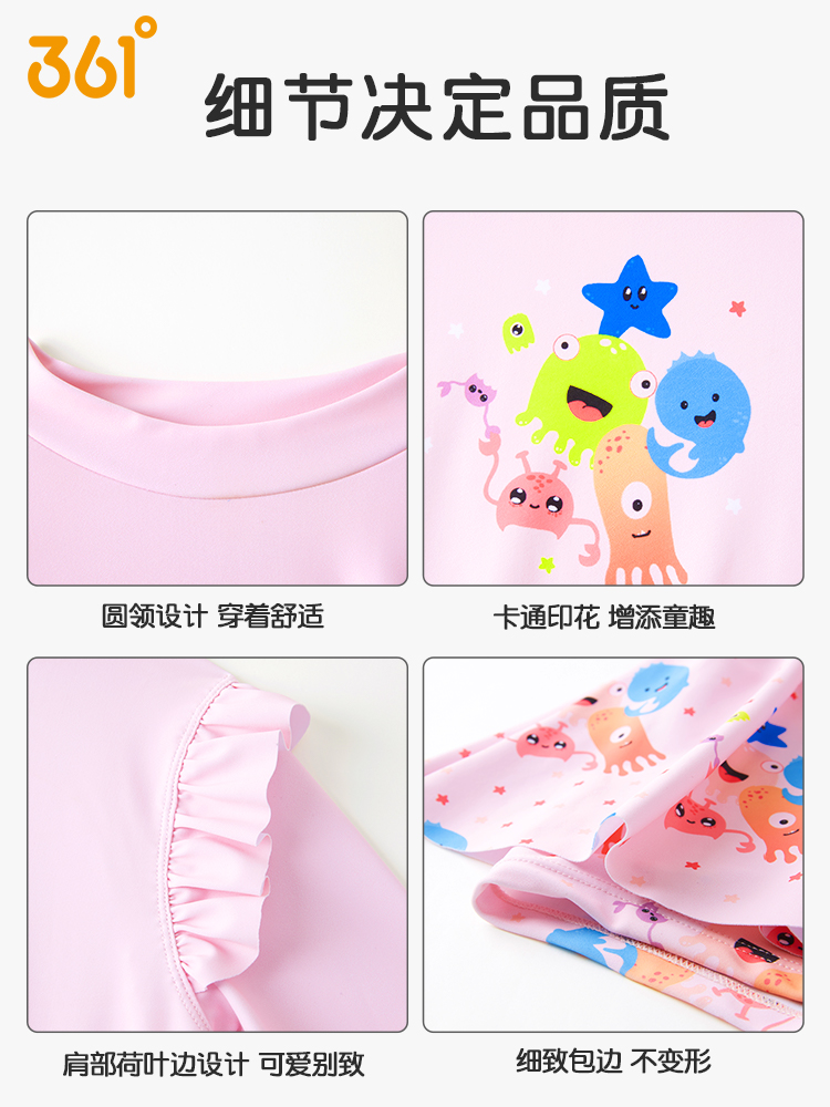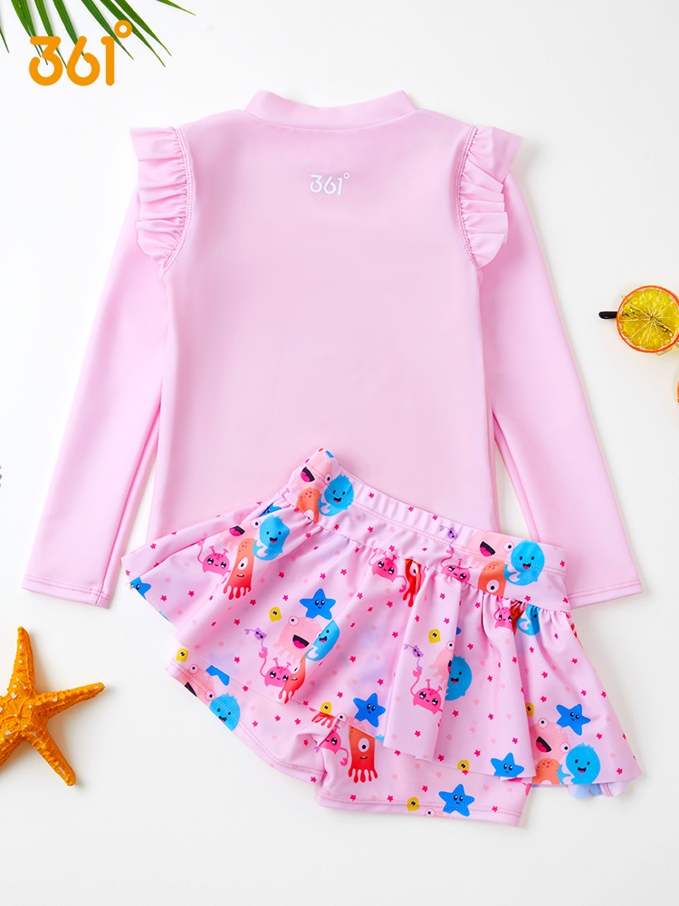 361 Girls Swimsuit Korean Version Long-sleeved Sunscreen Split Style Medium and Big Kids Fashion Princess Skirt Style Western Style Children's Swimsuit