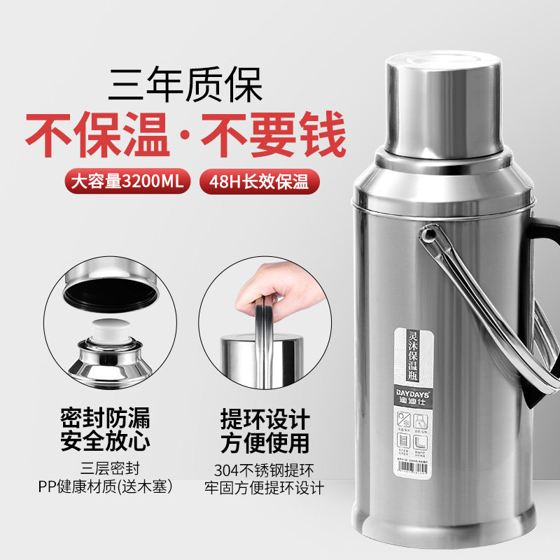 Stainless steel hot water bottle household boiling water bottle for student dormitory heat preservation kettle large capacity warm bottle thermos bottle