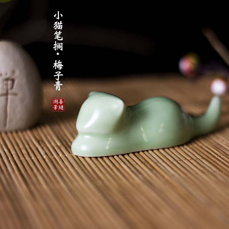 Half ancient Grass brush pen Brush Pens creative cute ceramic pens Pens Pens Shelves of 4 Bases Calligraphy Country Paintings Town Paper Town Ruler Small Pendulum Pieces Calligraphy Supplies Brush Adult Students Small Cat Ceramic Pens