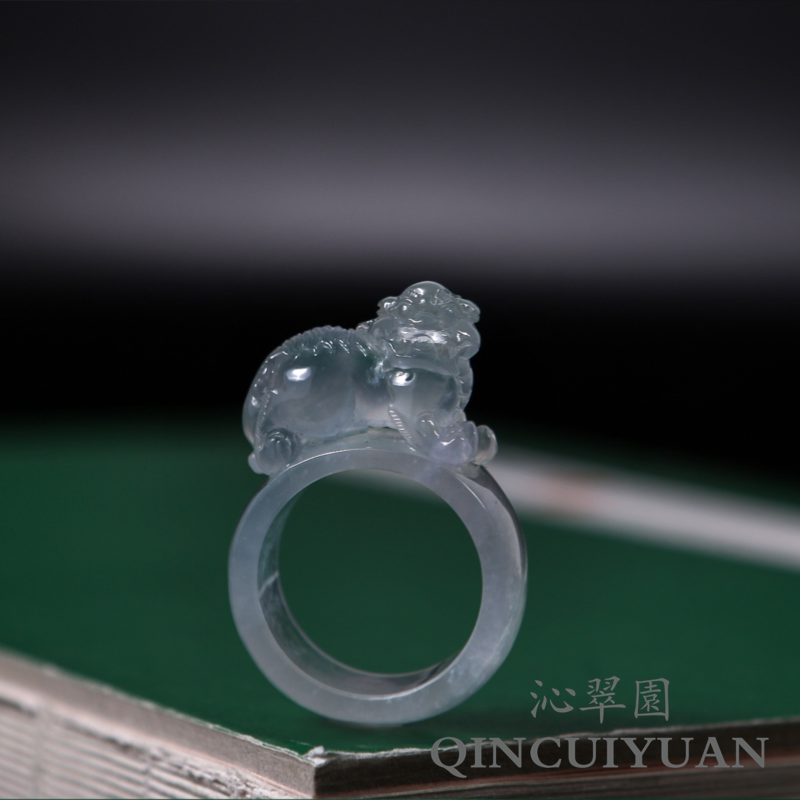 Women's real natural jadeite A goods Gao Bing Mu Na Lion Ring Men's and Women's Same Ring Finger China GTC
