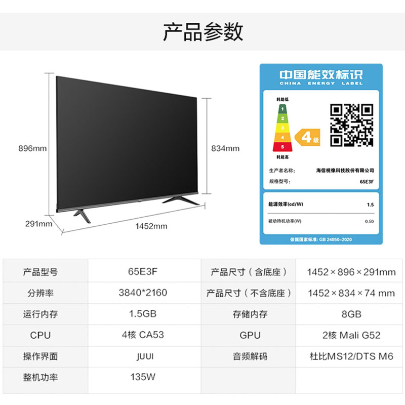 Hisense Hisense 65E3F 65 "4K Full Screen TV Smart Network HD Tablet Gome
