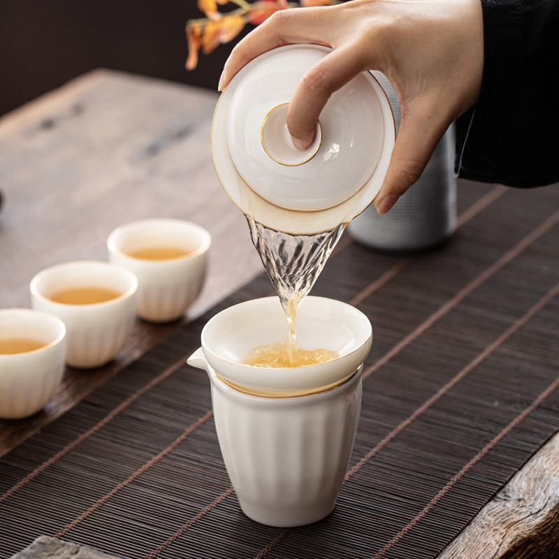 Single tea leak (no depiction of gold) Single tea leak (depiction of gold) Tea leak set (no depiction of gold) Tea leak set (depiction of gold) Tea leak + tea sea (depiction of gold) Tea leak + tea sea (no depiction of gold) Lid bowl + tea sea + tea leak (no depiction of gold) Lid bowl + tea sea + tea leak (depiction of gold) Side handle teapot + tea leak + tea leak Single cup tea cup (6 cups) Side handle teapot Mutton fat jade teapot