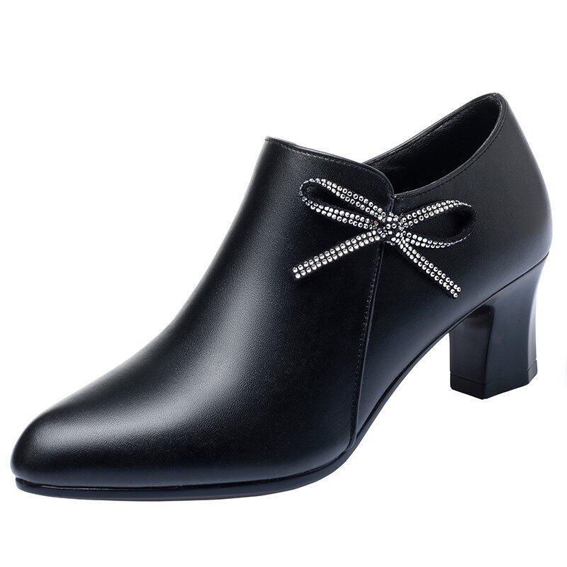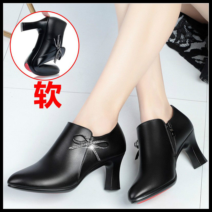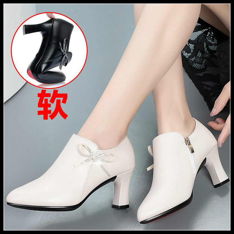 Mother's 40-year-old shoes soft bottom spring and autumn mid-heel bag shoes women's shoes 2021 new middle-aged thick-heeled high-heel leather shoes