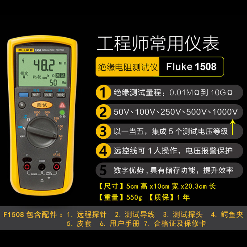 FLUKE Fluke F1508 Insulation Resistance Tester Digital Shaker F1503 F1535 Megger F1587