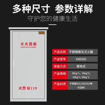 304 thickened stainless steel cart fire extinguisher box 35kg*1 cart type dry powder fire extinguisher box 50 kg 201