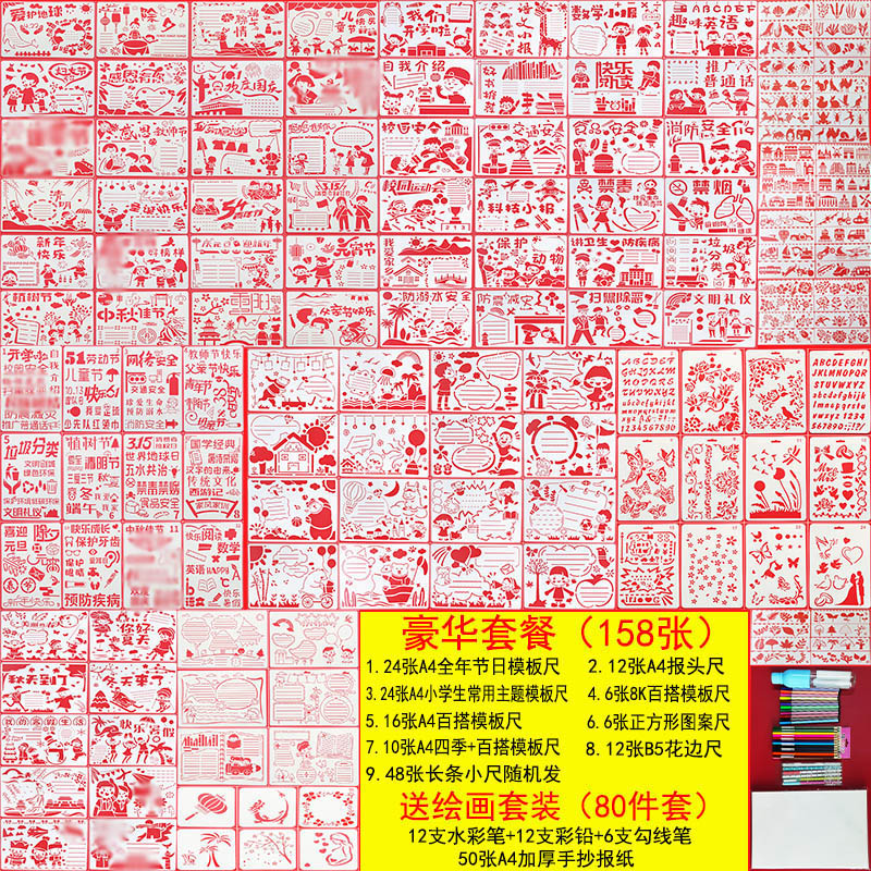 Children's Handwritten Newspaper Template Primary School Students Daquan a4 Hollow Semi-finished Products 8 Open Mid-Autumn Festival Material Universal Artifact Grade 1 a3 Mathematics 8K English Reading Drowning Prevention Painting Ruler Set