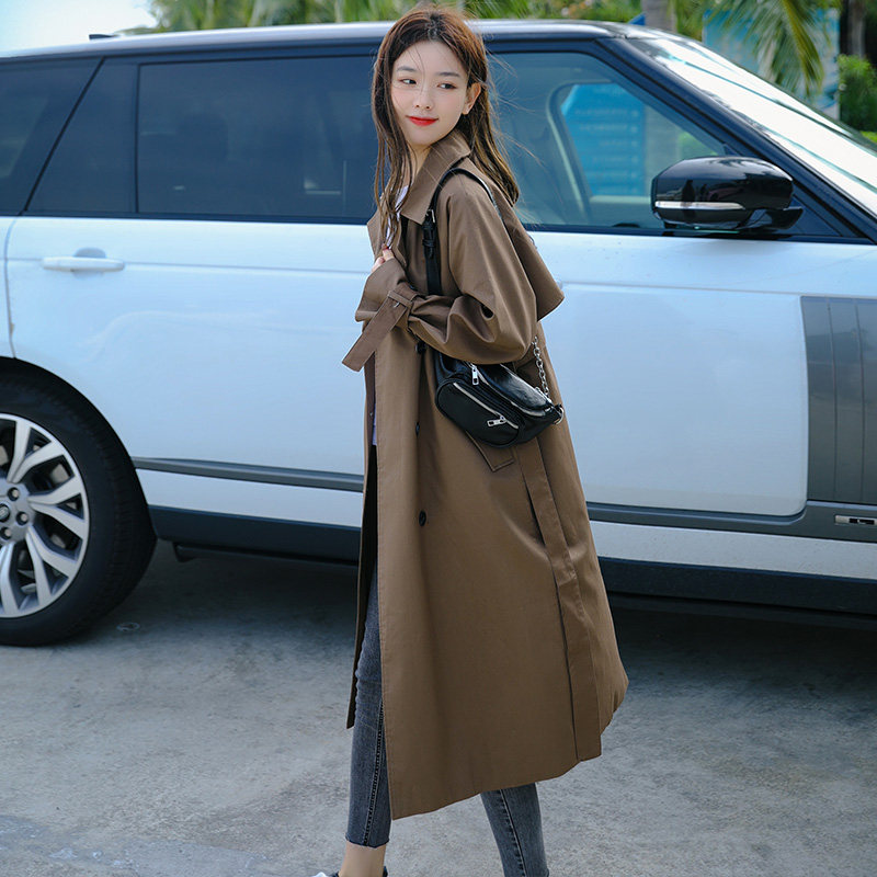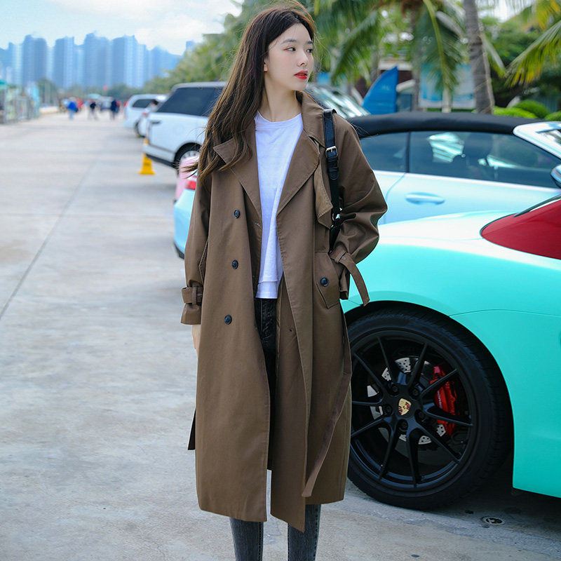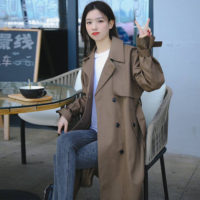 Wind cloisters women in the middle of the year 2024 new spring and autumn Korean version easy Inn wind over knee pop Temperament Coat-Taobao