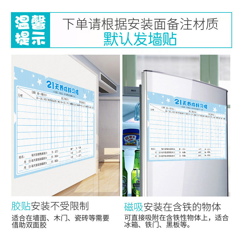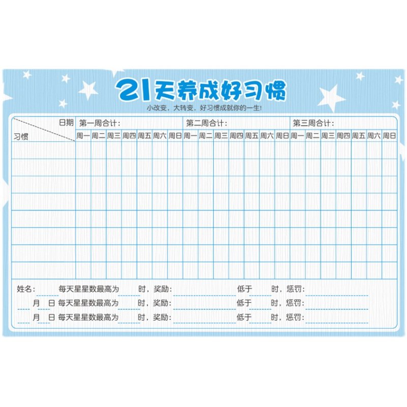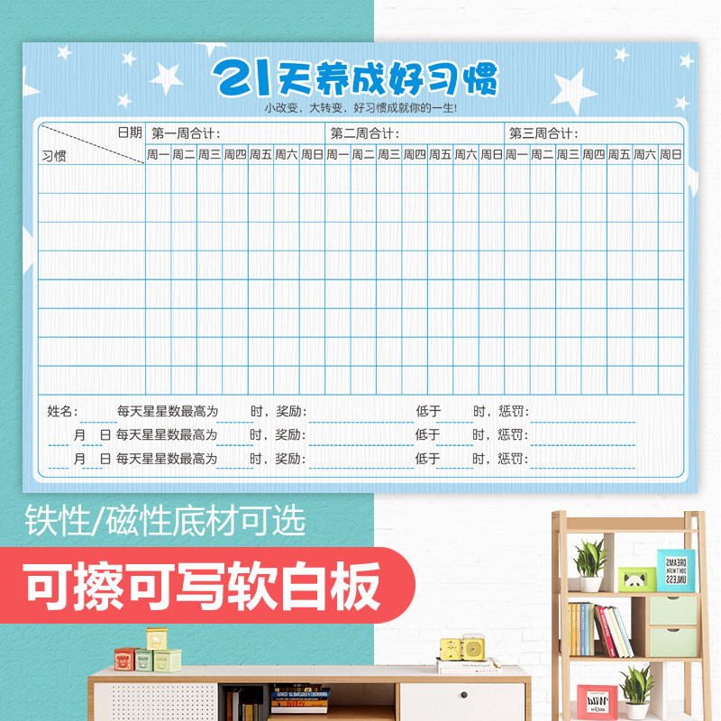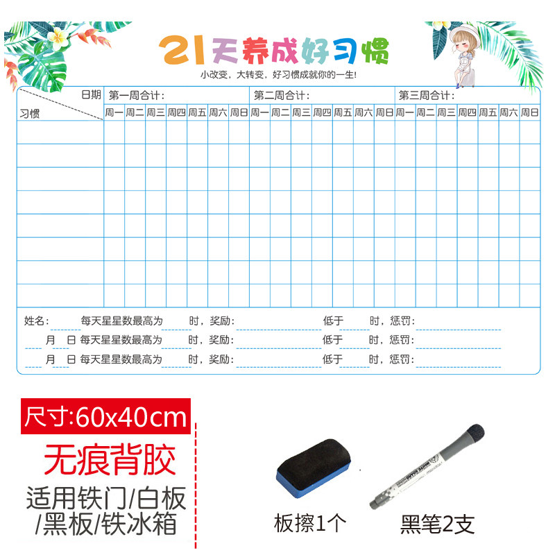 2021 Custom Erasable Plan Table Wall Sticker 21 days Habit Formation Table Magnet Children Growth Points Table Stickers