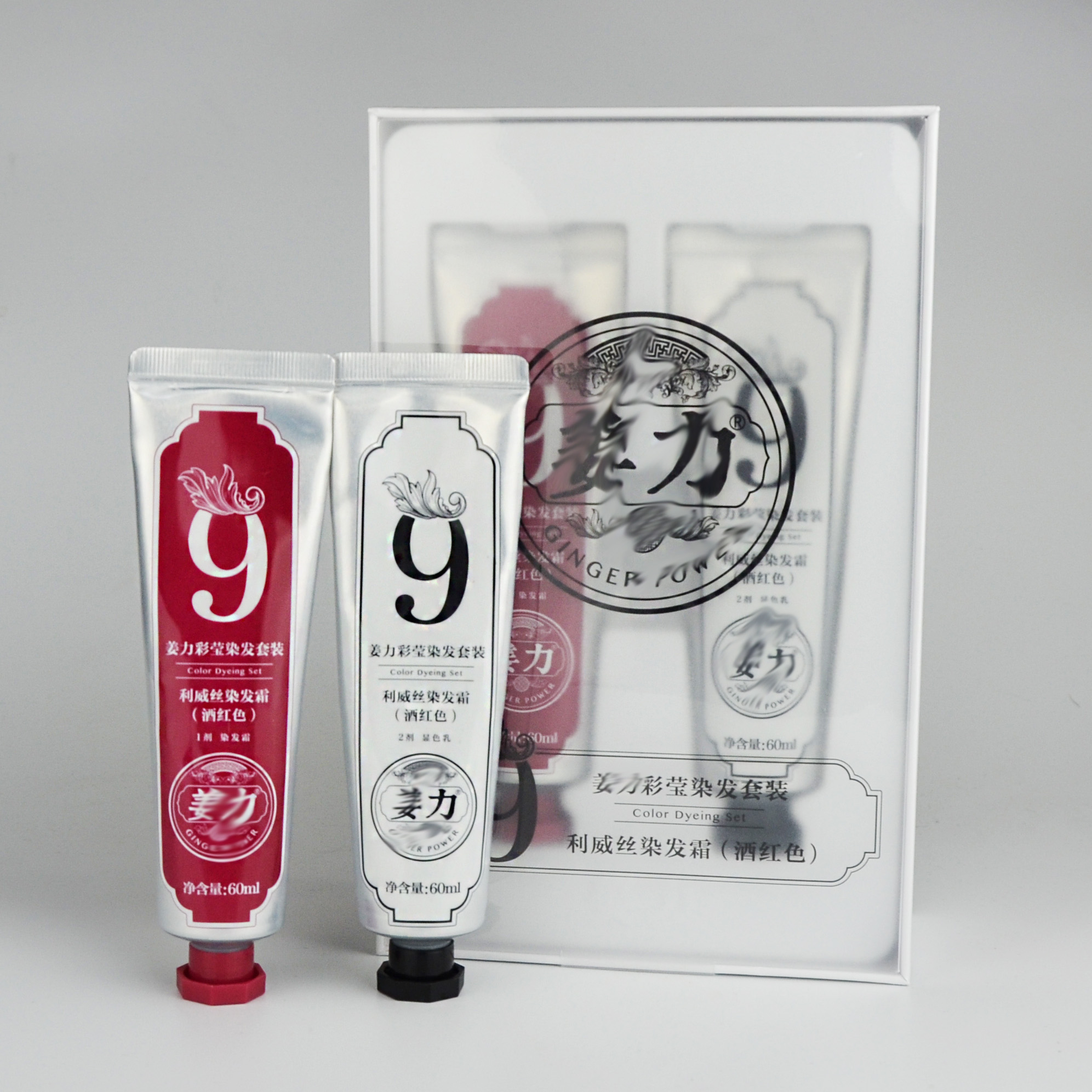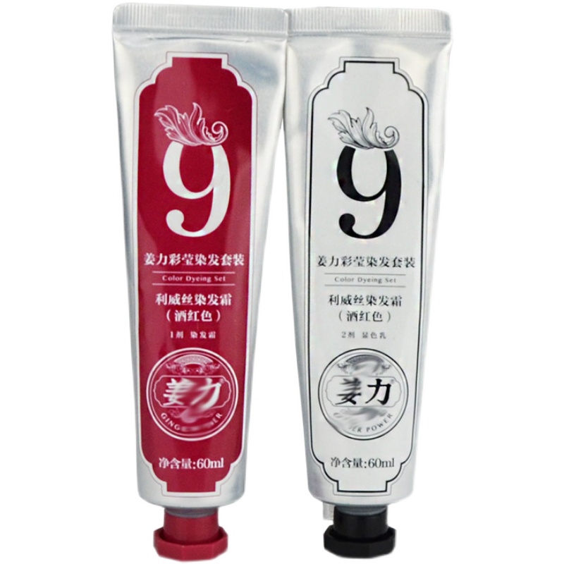 (Wine red) Jiang Li No. 9 hair dye cream natural plant extract set healthy wine red lasting and not fade