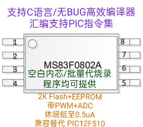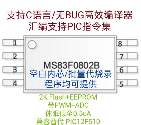 Original ADC+PWM European and American quality MCU MCU MS83F0802 resources compatible with PIC12F510 675