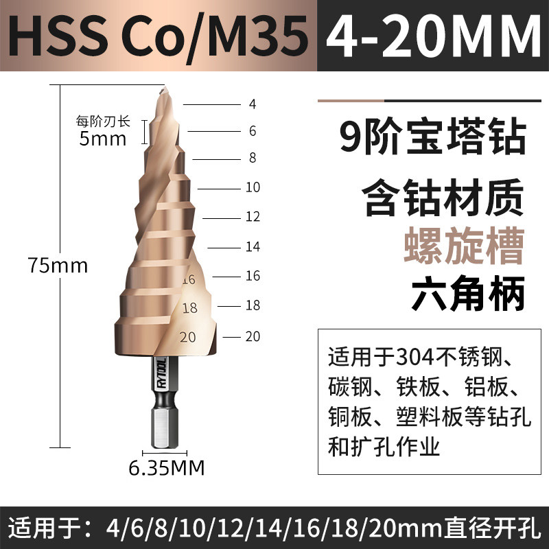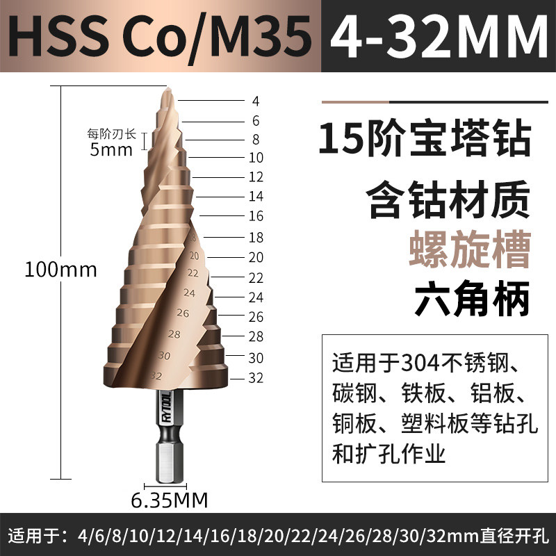 Pagoda drill bit ladder twist drill conical metal drill stainless steel template iron plate steel plate drilling hexagonal handle