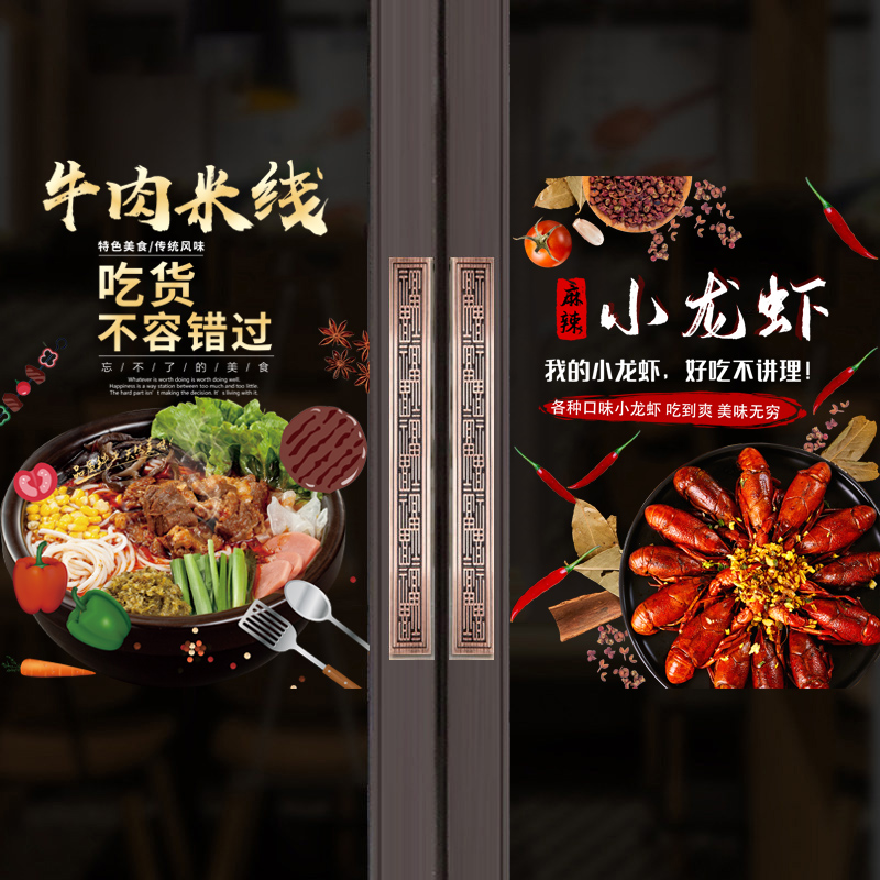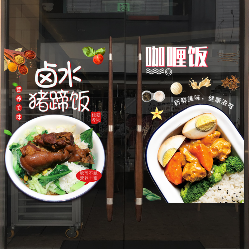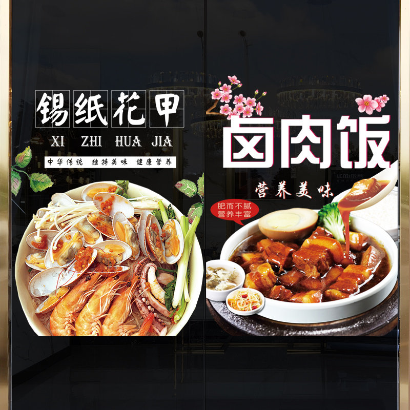 Personalized restaurant glass window decoration stickers fast food claypot rice flower nail powder gourmet promotional advertising wall stickers