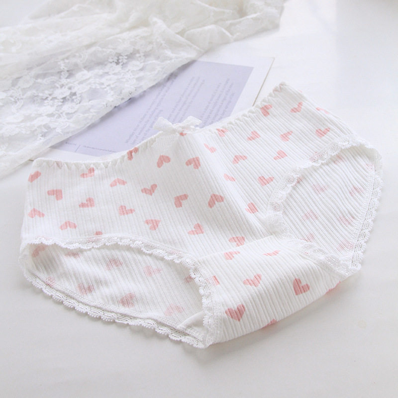 5 packs of sexy underwear women's pure cotton antibacterial mid-waist breathable cotton file cute lace girl Japanese briefs