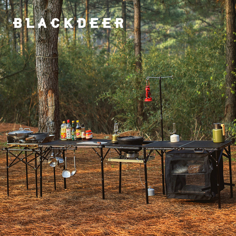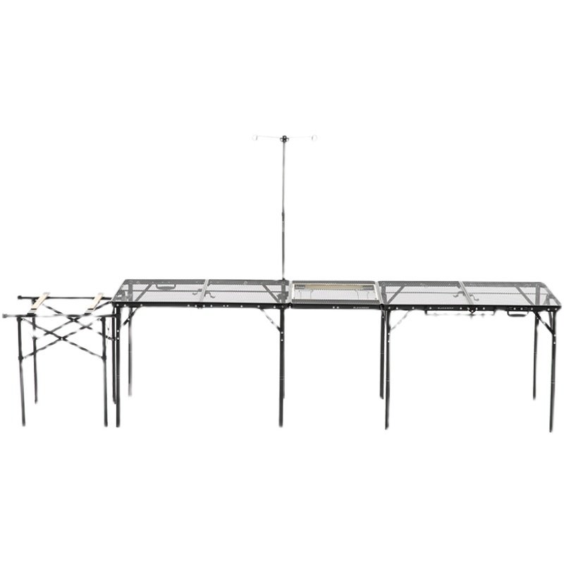 Iron mesh folding table iron mesh connection plate stove bracket camping lamp rack multi-function hanger double-layer storage cabinet - without table full set combination red flame double burner