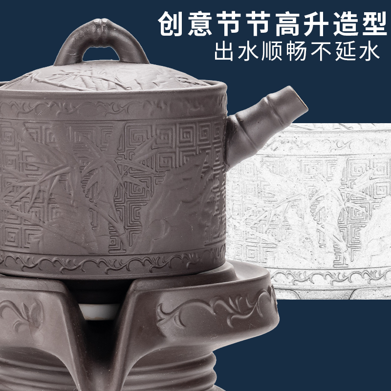 Lazy semi-automatic tea set Household Kung fu stone mill teapot Tea artifact Purple Sand Teacup Tea tray Living room