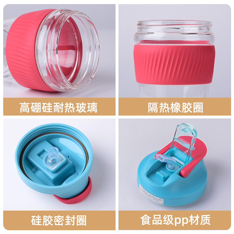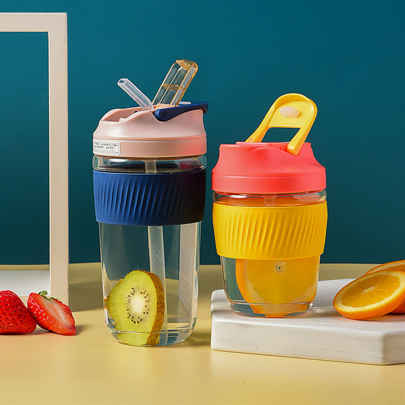 Glass water cup female with straw Korean version double drinking cup simple portable cute tea cup large capacity coffee cup