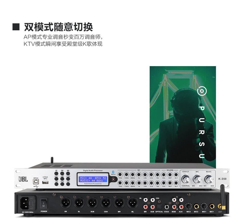 JBL professional anti-howling K song pre-level reverb effect device home KTV dedicated audio karaoke pre-amplifier