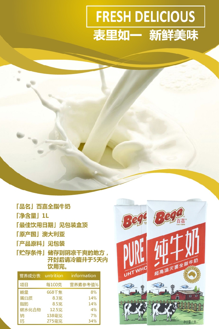Baijia full-fat pure milk Australian imports can beat milk bubble drink black sugar fresh milk breakfast milk 1L x 12 boxes