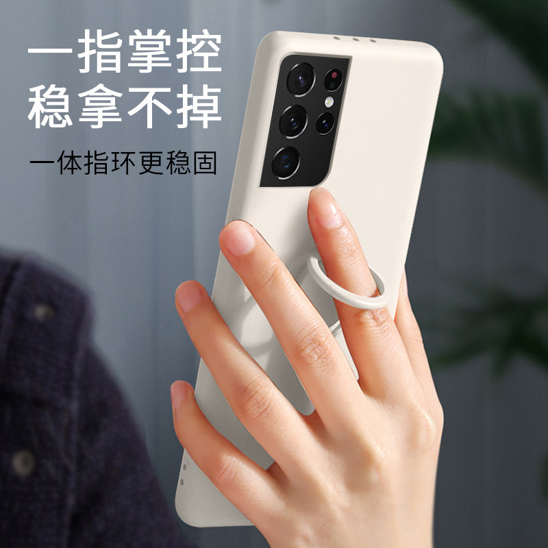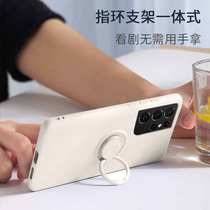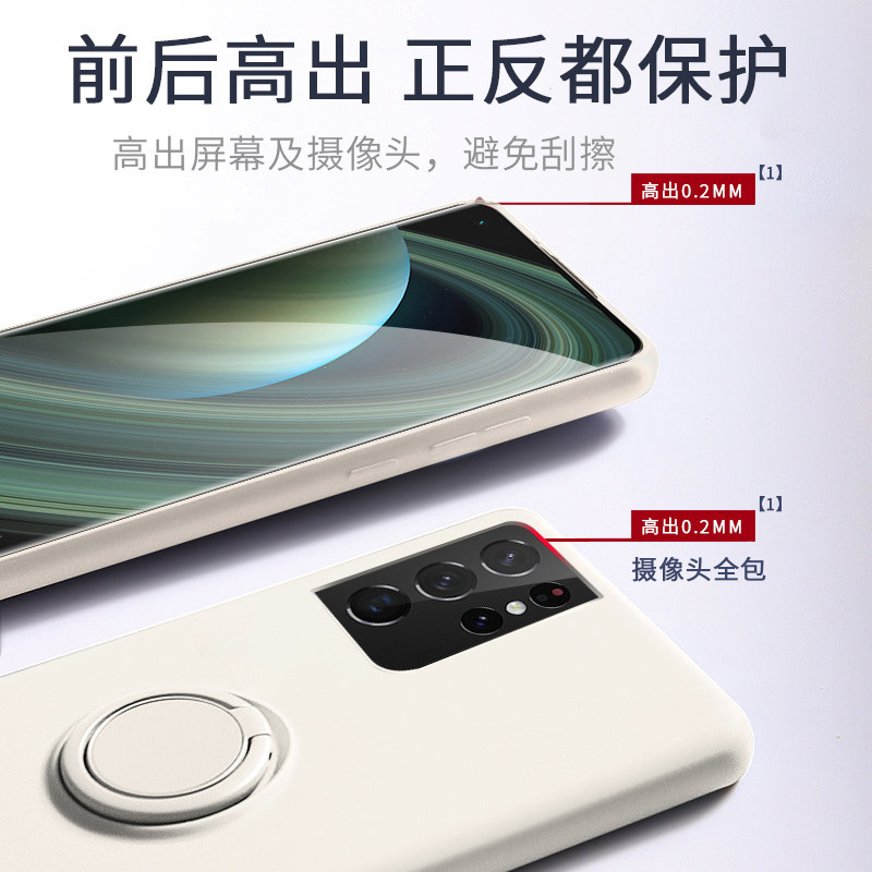 Suitable for Samsung s21ultra mobile phone case liquid silicone s21 protective shell with ring integrated bracket s21 plus ten ultra-thin all-inclusive anti-drop tide brand male new Samsung s21u soft shell