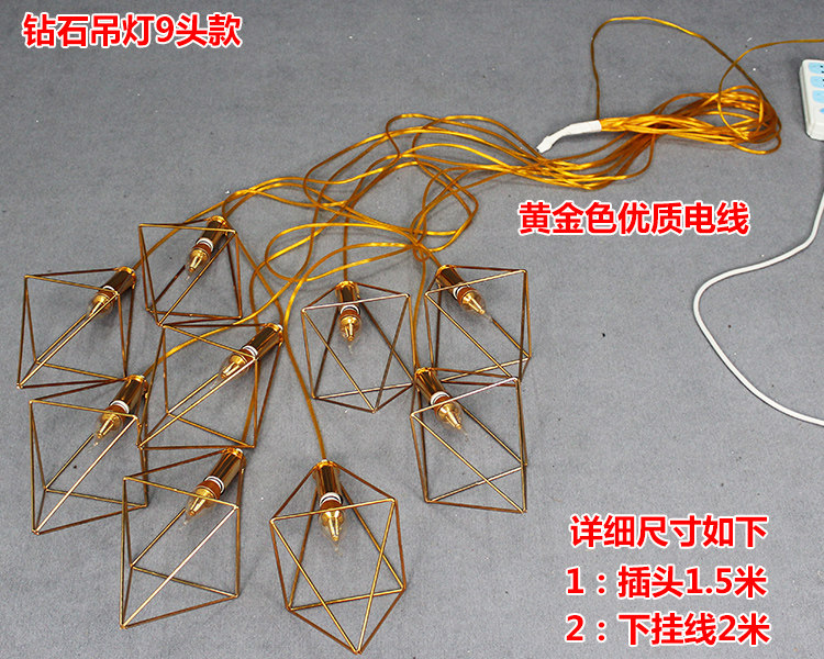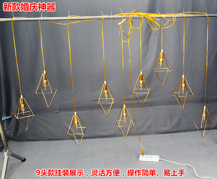 New Wedding Props 9 Heads Tandem Golden Diamond Lamp Pendant Light Wedding Stage Decoration Iron Art Diamond Road Citation-Taobao