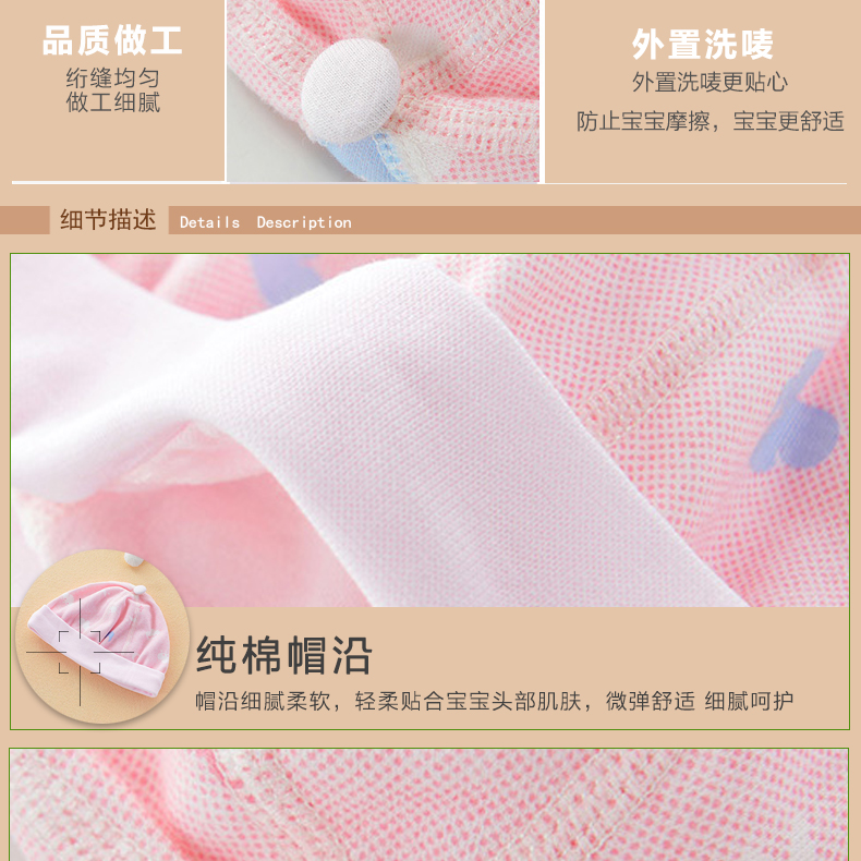 Tongtai newborn baby hat 0-3 months pure cotton tire hat newborn baby hat pullover hat boneless sewing