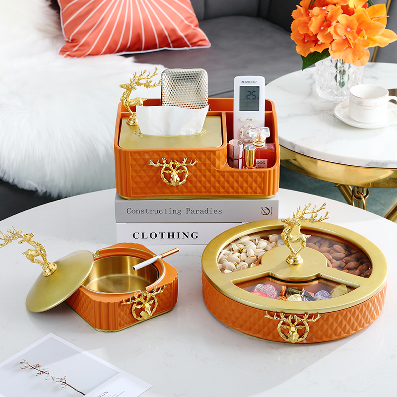 Hermes Orange Three-Piece Hermes Orange Multifunctional Tissue Box Hermes Orange Divided Dried Fruit Tray Hermes Orange Ashtray Emerald Three-Piece Emerald Multi-Function Tissue Box Emerald Disc Dried Fruit Tray Emerald Ashtray