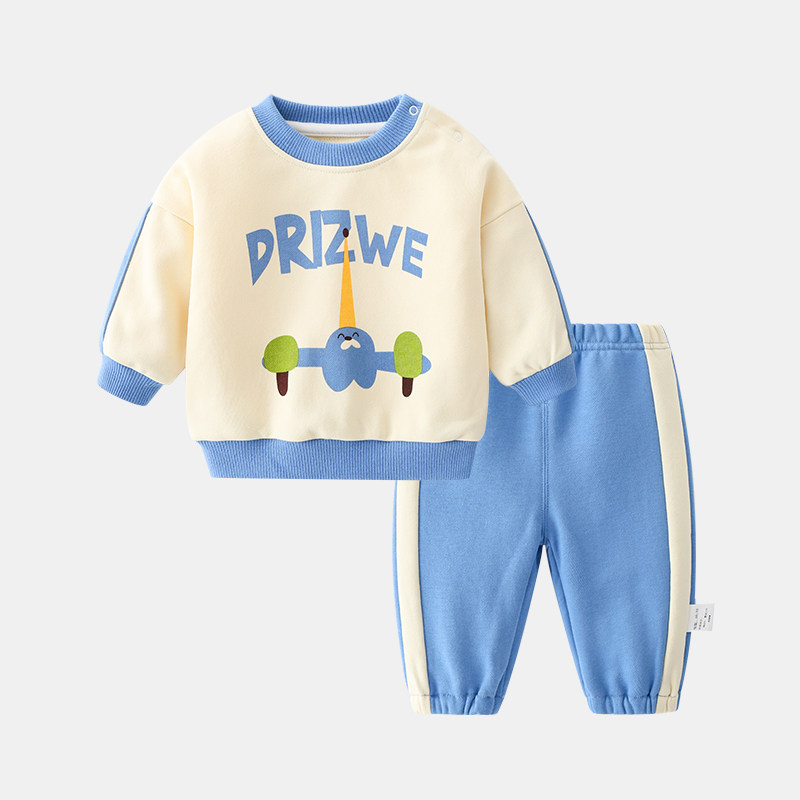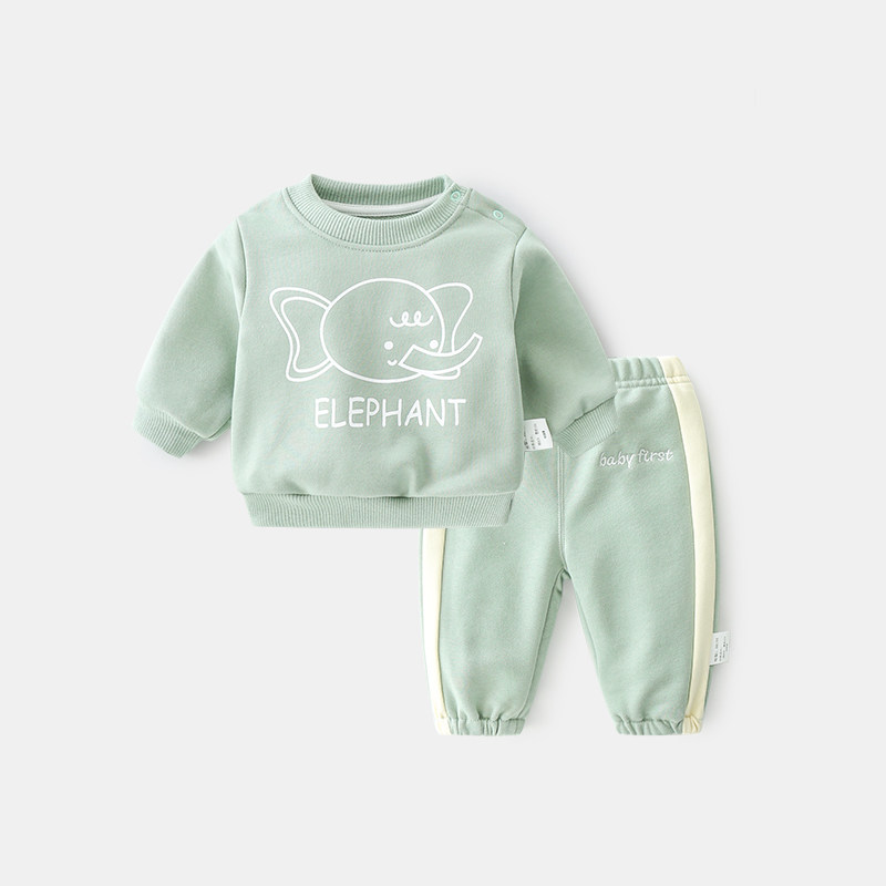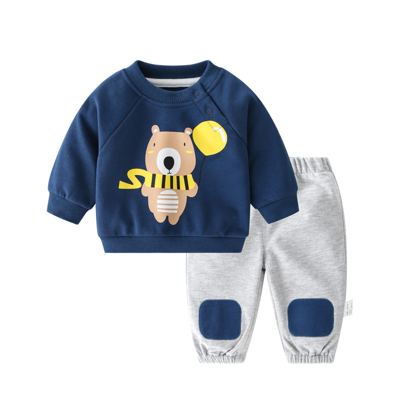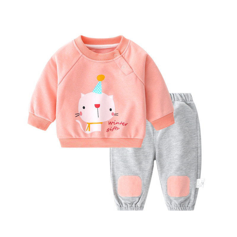 Baby Spring Autumn Suit Boy Wear Pants Thick Cotton T Pants Two Sets Children Girl Spring Fall Week Year Old Clothes Tide