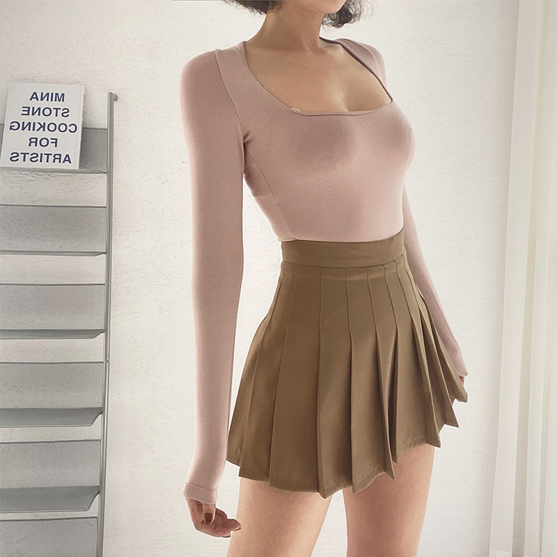 ABMY khaki pleated skirt design sense pleated skirt high waist a word slim sexy skirt babes suit skirt