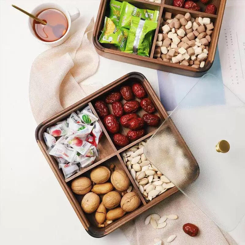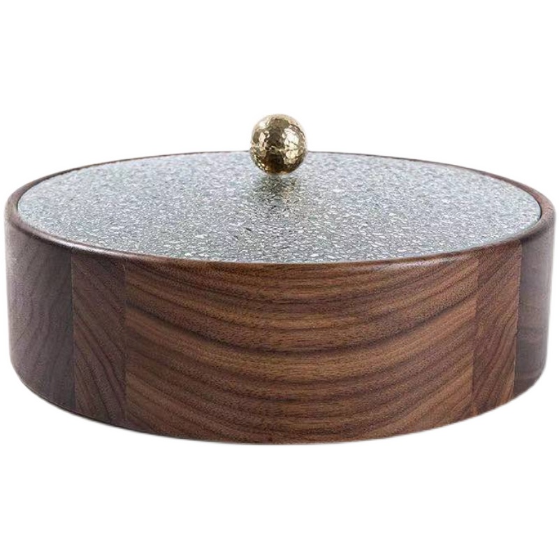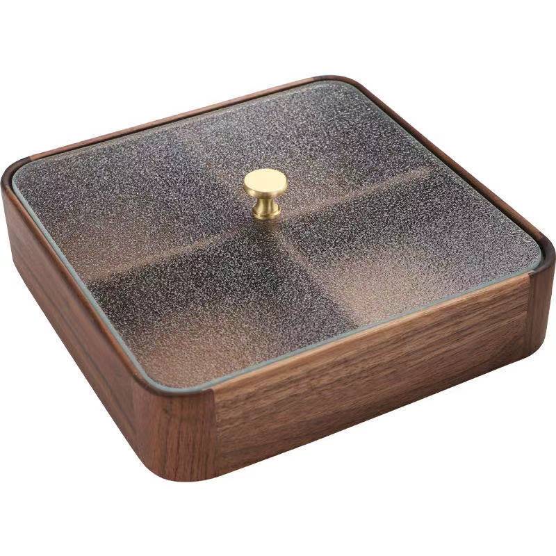 North American Black Walnuts Solid Wood Nut Case Round Square with lid Divided Candy Snacks Household Containing Box Dried Fruit Box-Taobao