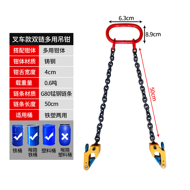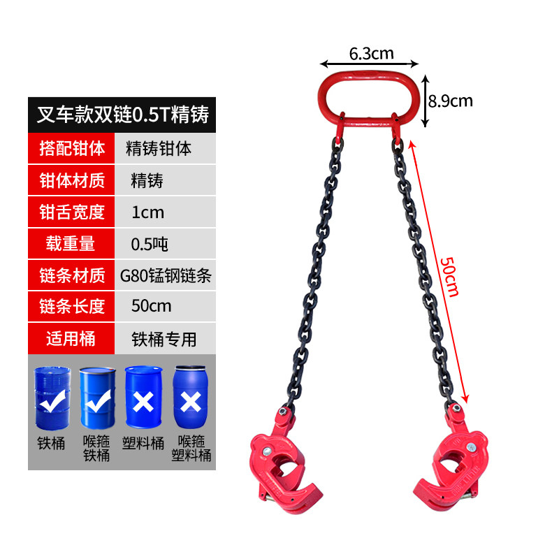 Oil barrel lifting pliers oil barrel clamp oil barrel lifting hook clamping oil barrel hanger chain hanger double chain oil barrel clamp