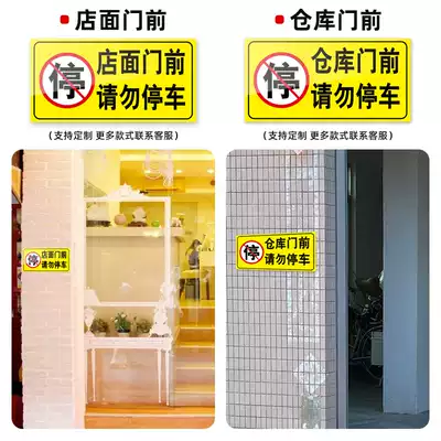 No parking warning signs in front of the garage door. Please do not stop the car at the door of the shop.