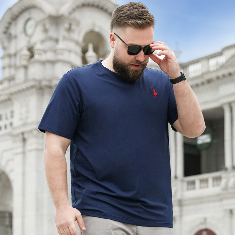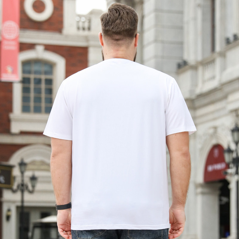 Yum fox large size men's casual summer clothes plus fat plus fat man fat man white shirt short-sleeved cotton t-shirt man