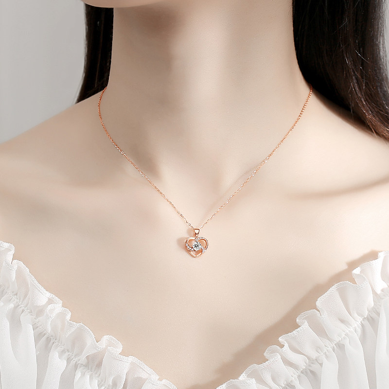 (Only Love Gift Box) Rose Gold Blue Zircons Eternal Heart Necklace (Only Love Gift Box) Rose Gold White Zircons Eternal Heart Necklace (Only Love Gift Box) Platinum Blue Zircons Eternal Heart Necklace (Fine Gift