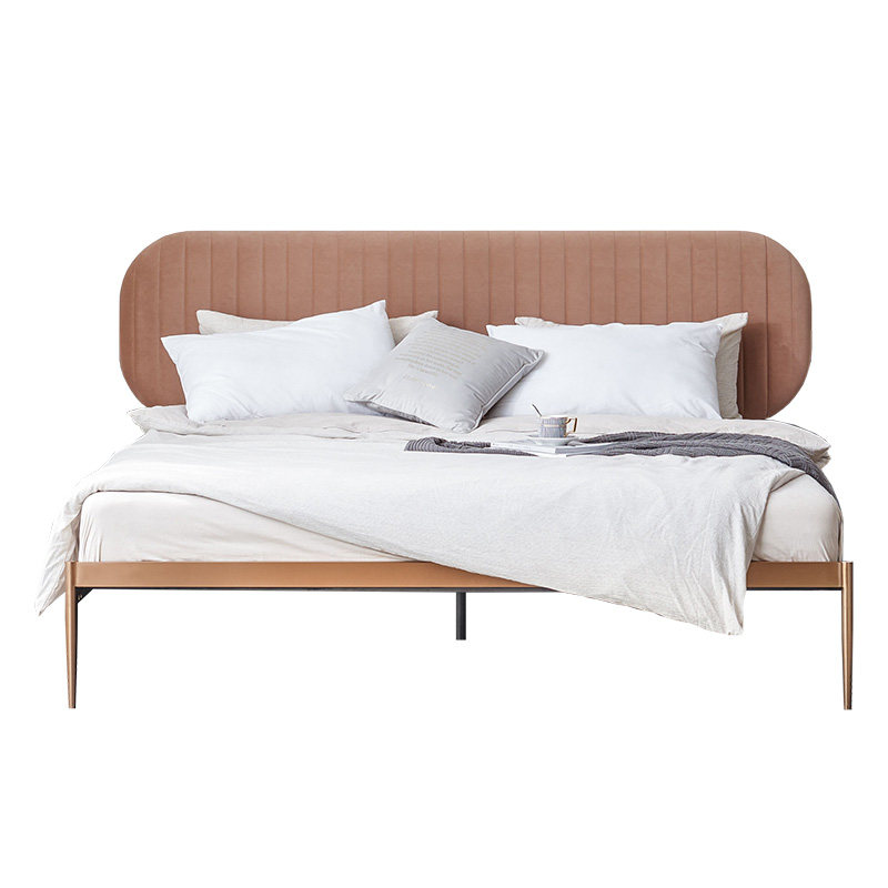 Steel light luxury bed stainless iron art bed Nordic modern minimalist ins wind princess bed net red double bed gold metal