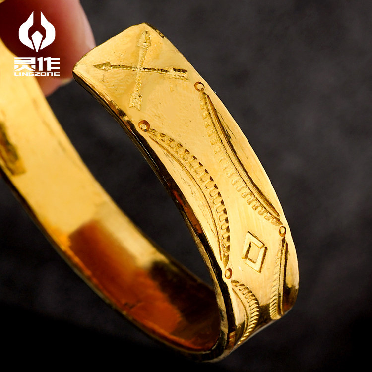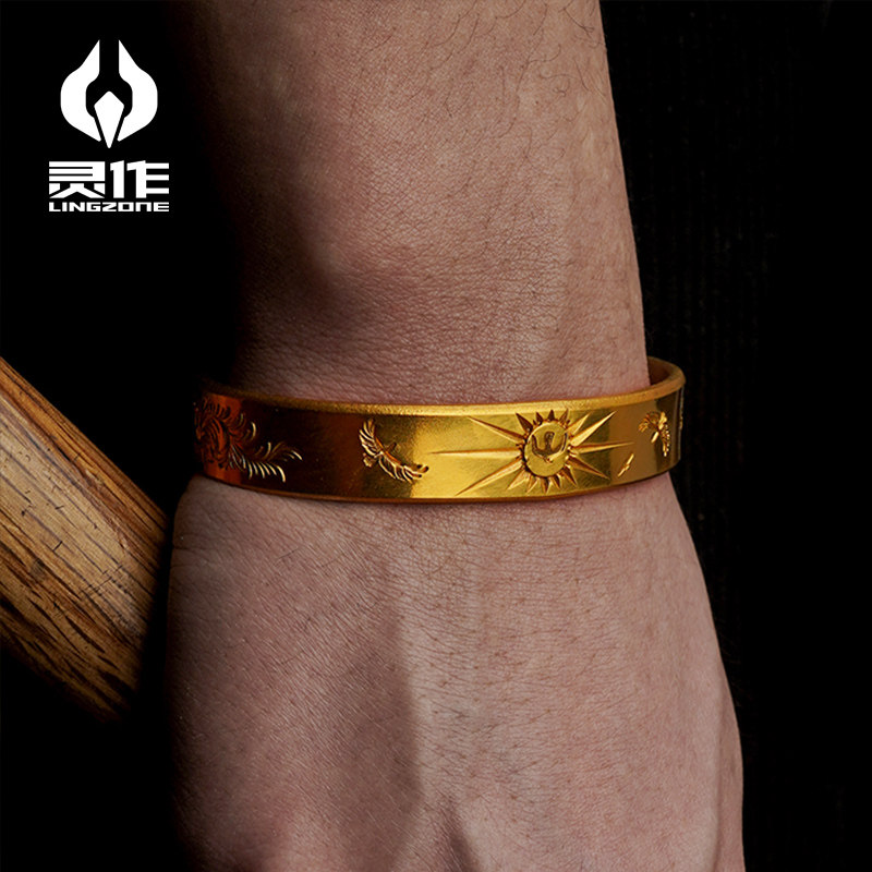 Lingzuo silver ornaments, 24K gold thunderbird sun tang grass pattern pure gold bracelet supervised by Papa Bear, hand-carved personality