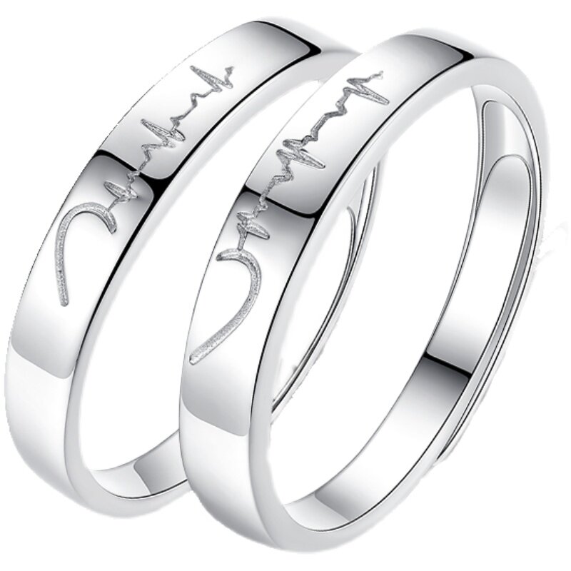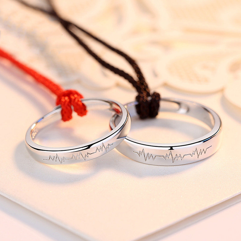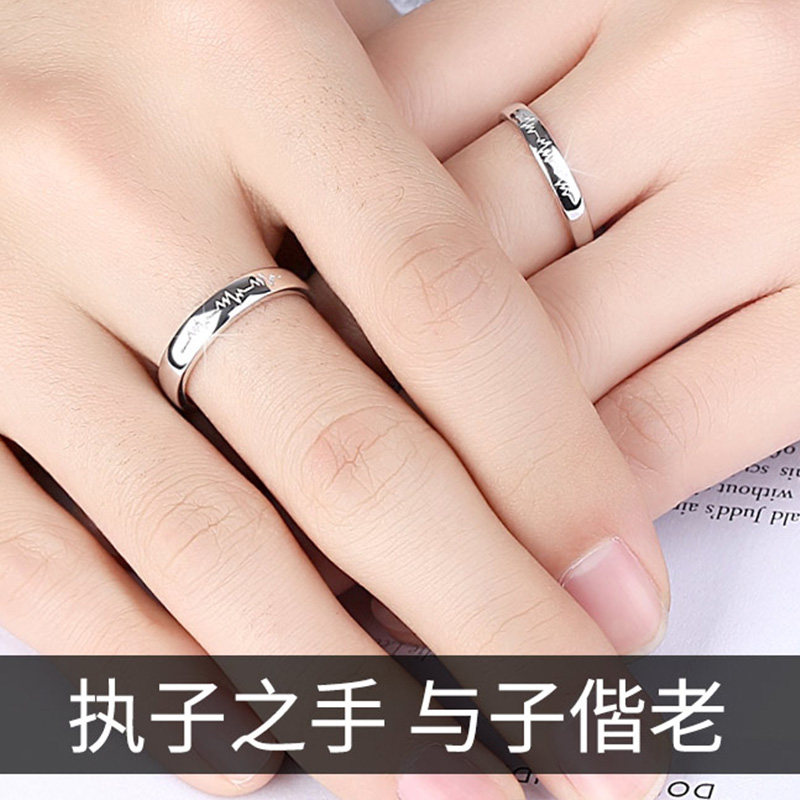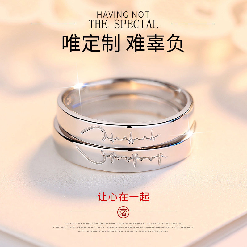 Couple's ring female pure silver pair of living words of love ring heartbeat letter withdrawal 7 New Year's Eve birthday present