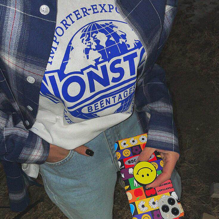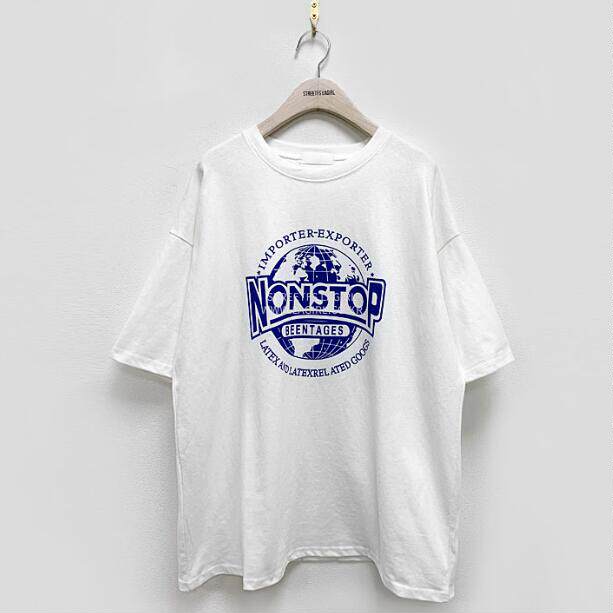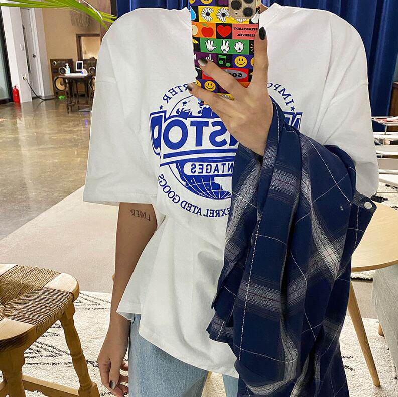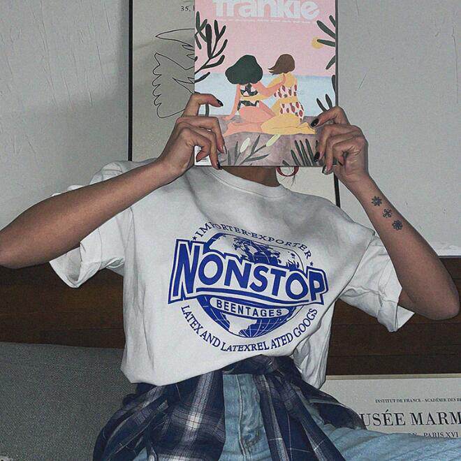 Lagirl Korea 22 summer Korean alphabet Earth printing with round collar T - shirt