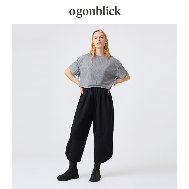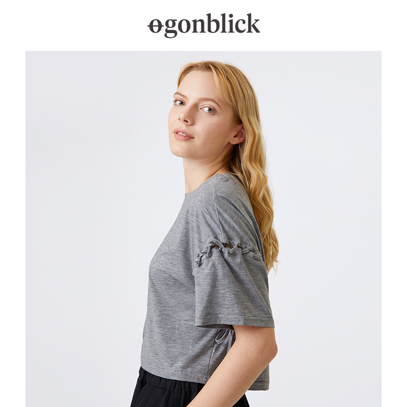 ogonblick Nordic moment pure color short sleeve t-shirt woman loose summer new 100 hitch round collar female strap short