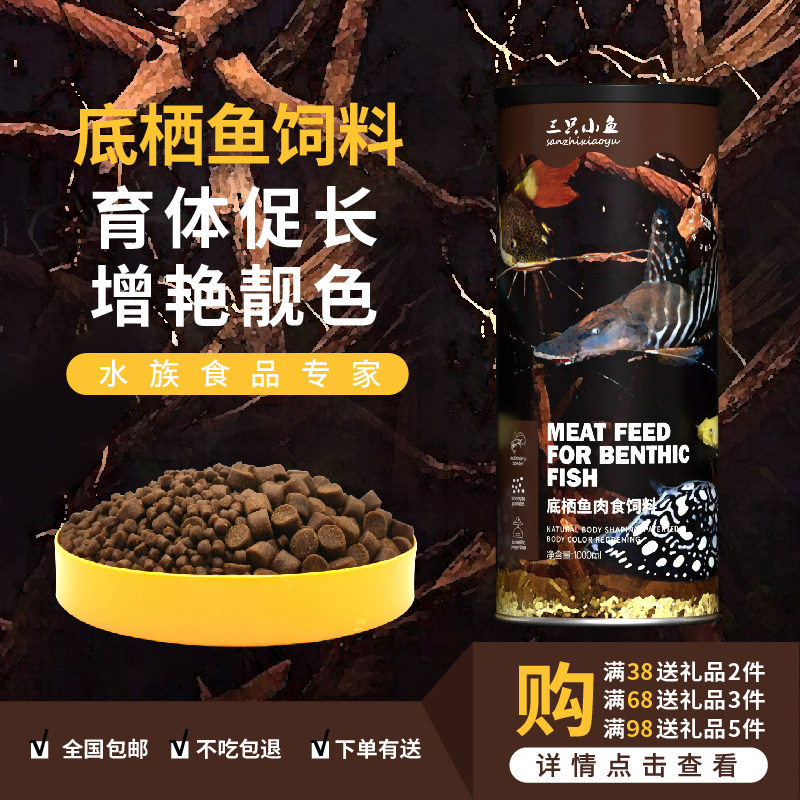 Three small fish feed bottom perch cleaning ratfish sinking sinking sinking sinking fish grain shaped fish recipe cat